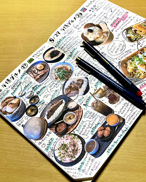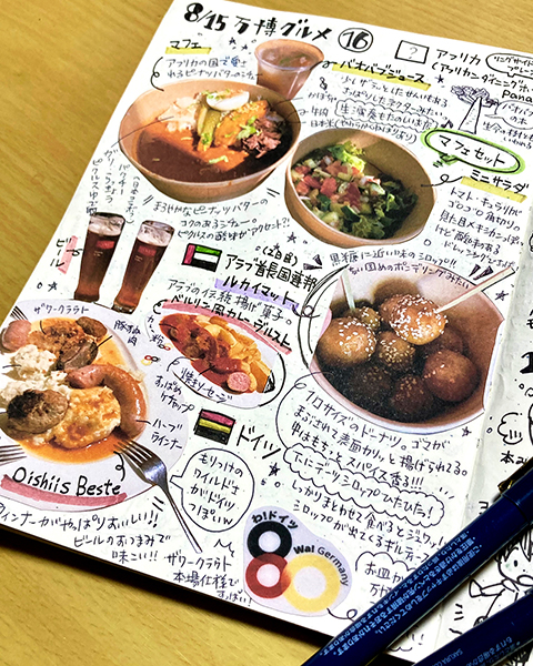 また今年の年賀状は、もう一度ちゃんと万博グルメを描き直してイラストにしたいと思い個人的TOP10の食べ物を描いたので、その際にも我流手帳にまとめていたグルメメモが大活躍で資料と感想がまとめられていたのでとってもスムーズ!