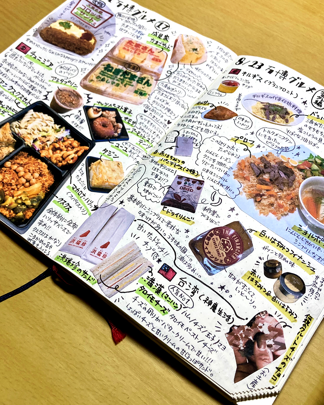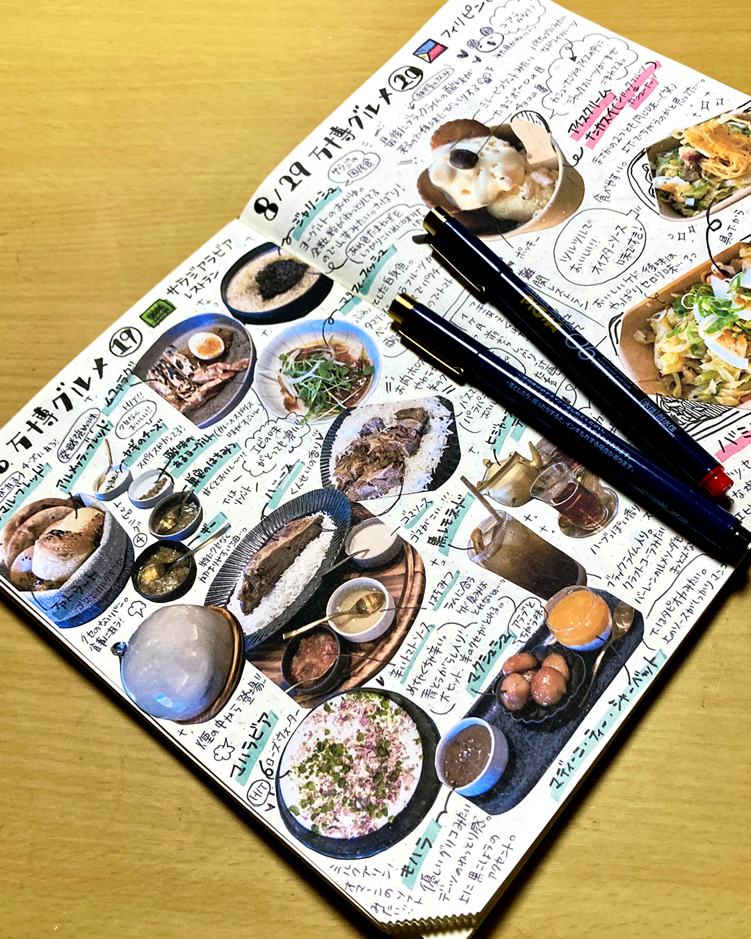 ちょうど、この時期にコラージュ作家さんの作品を見る機会があったので自分も手帳をコラージュしてみたいと思い、行った万博グルメメモをいつものイラストとは違ってコラ―ジュでまとめてみました!