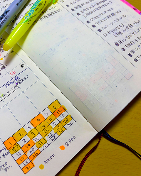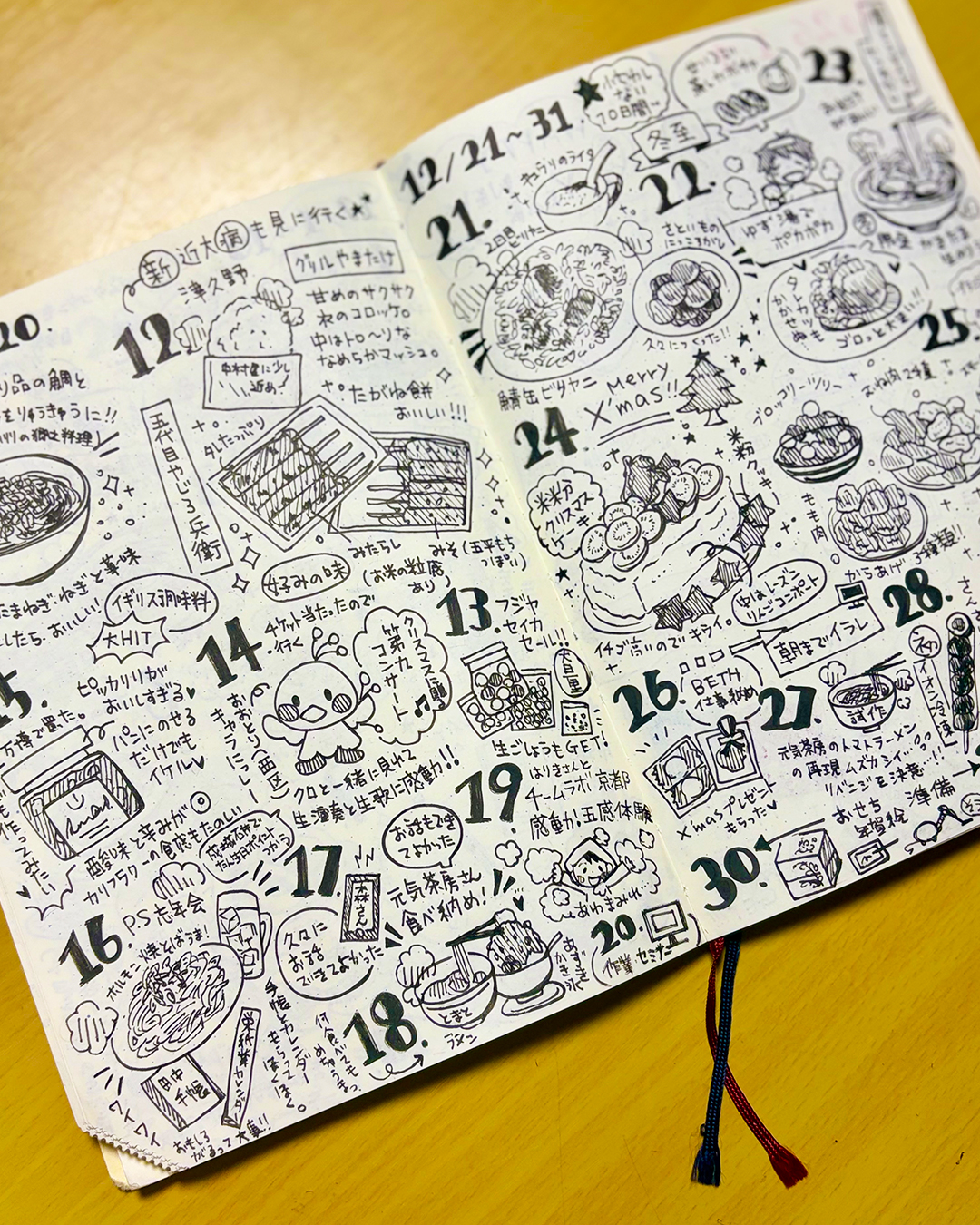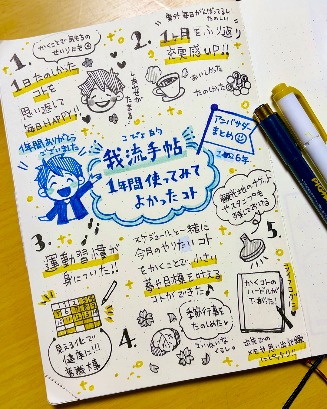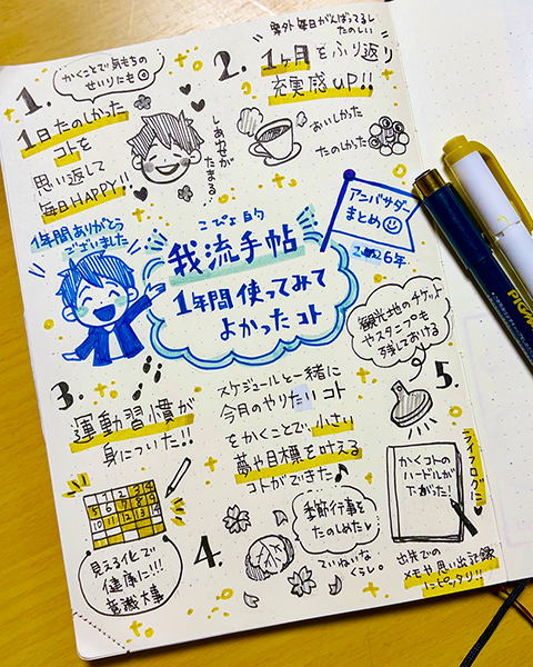 描いたり、貼ったり、メモしたり。そのときの気分で自由に使ってきた1年。